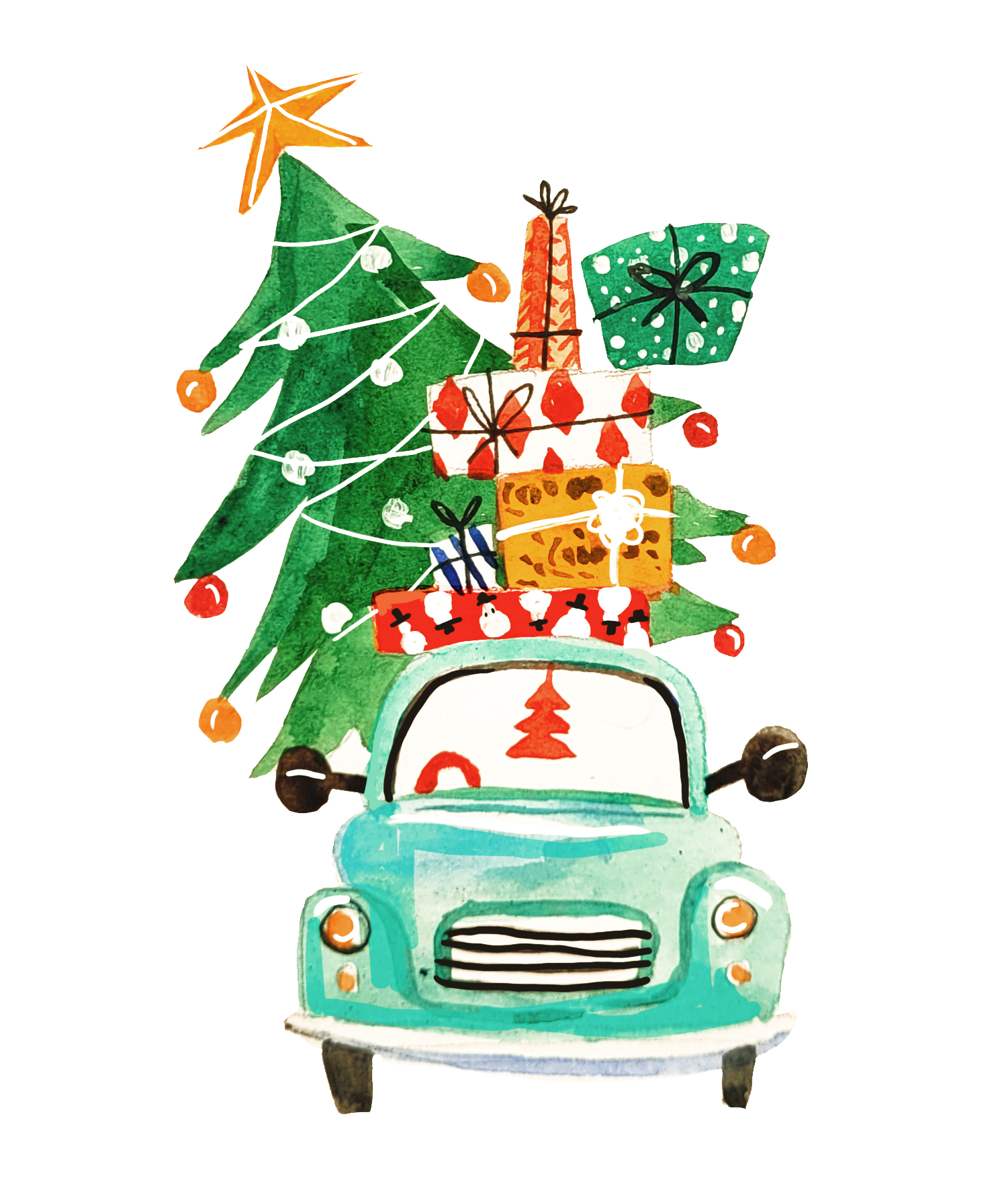 Виды стикеров и их применение. Основы работы с акварелью и проработка 2 первых эскизов- шампанского и машинки с подарками.
